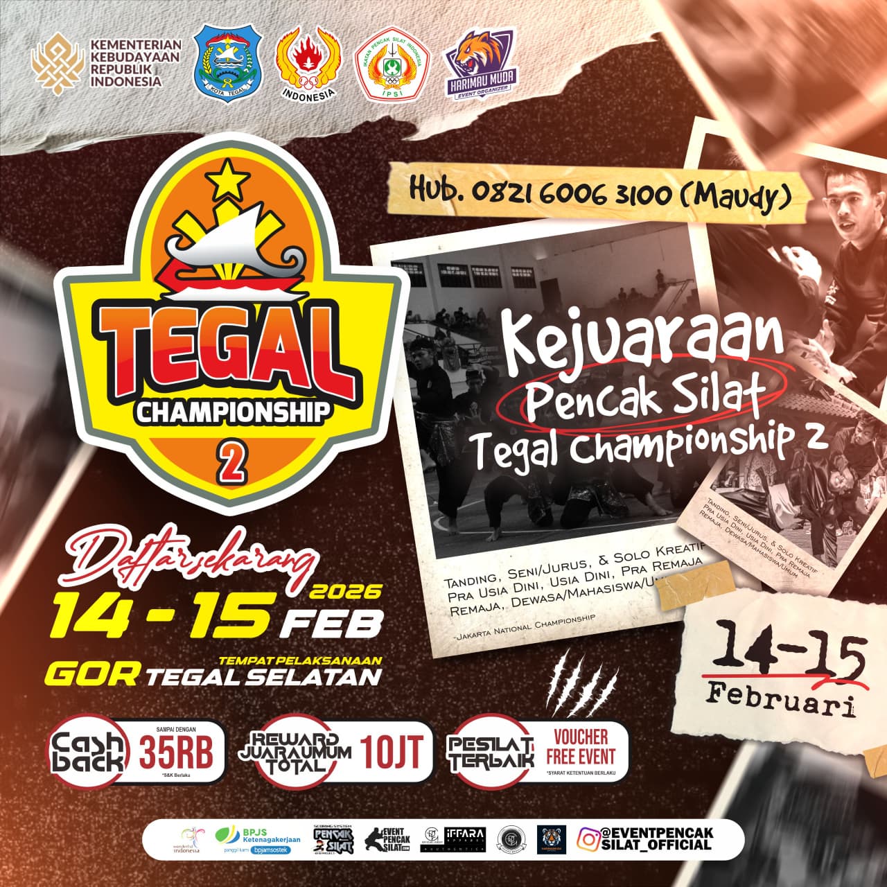 JEMBER J NYA APA? JUARA JUARA JUARA ====== ๐ผ๐ข๐ผ ====== Assalamualaikum warohmatullahi wabarokatuh, salam pencak silat !!!! sudah siapkah kamu membuang ego mu di gelanggang ?!?! Siapkan mental dan fisik kalian untuk mengalahkan ketakutanmu di Kejuaraan Pencak Silat di ๐ฅ JEMBER CHAMPIONSHIP 3 ๐ฅ Kejuaraan akan diselenggarakan untuk kalian para pesilat muda pada : ๐ : 14 - 15 Februari 2026 ๐: GOR PKPSO Jember benefits: ๐ MEMPEREBUTKAN PIALA KEMETERIAN KEBUDAYAAN RI ๐ MEMPEREBUTKAN PIALA JUARA FAVORIT 1,2,DAN 3 ๐ MEMPEREBUTKAN JUARA UMUM 1,2 DAN 3 ๐ PIALA PESILAT TERBAIK DAN VOUCHER NEXT EVENT ๐ฅ SELURUH PESERTA MENDAPAT SERTIFIKAT DAN MEDALI ๐ EVENT AKAN TERCATAT DIKURASI PUSPRESNAS KEMENDIKBUD ๐จ SELURUH PESERTA DIASURANSIKAN BPJSTK ๐๐๐ญ๐๐ ๐จ๐ซ๐ข ๐ฆ๐ฎ๐ฅ๐๐ข ๐๐๐ซ๐ข ๐๐/๐๐ซ๐ ๐๐ฌ๐ข๐ ๐๐ข๐ง๐ข, ๐๐/๐๐ฌ๐ข๐ ๐๐ข๐ง๐ข, ๐๐๐/๐๐๐ฌ/๐๐๐๐๐ซ๐๐ฃ๐๐ญ, ๐๐๐/๐๐/๐๐๐๐๐ซ๐๐ฃ๐๐ญ ๐ก๐ข๐ง๐ ๐ ๐ ๐๐๐๐๐๐๐๐๐/๐๐๐ฐ๐๐ฌ๐/๐๐ฆ๐ฎ๐ฆ ๐Info selengkapnya Admin Raisa 081919813121 ๐ธ Instagram @sayaprajawali.eo media partner : @eventpencaksilat_official